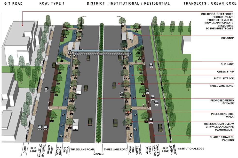As a part of the approach to improve the cityscape and urban road network of the city, the roads within scope of this project are classified and analyzed based on three parameters – Right of Way (Road width), Character Districts and Urban Transects.