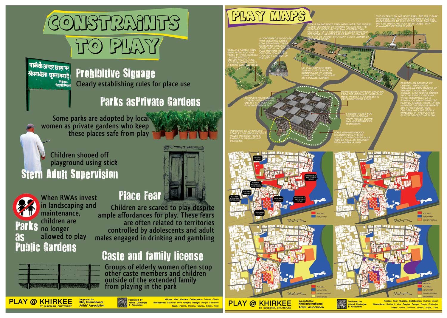 In 2011, Sudeshna Chatterjee was supported by KHOJ International Artists Association, HIVOS and Ford Foundation to do a study exploring children’s play in Khirkee Village in New Delhi. Using ethnographic fieldwork as the primary method, Sudeshna supported by the KCA team explored the nature of play, and the spatial experience of play in a Delhi neighborhood where children do have permission to play outdoors.