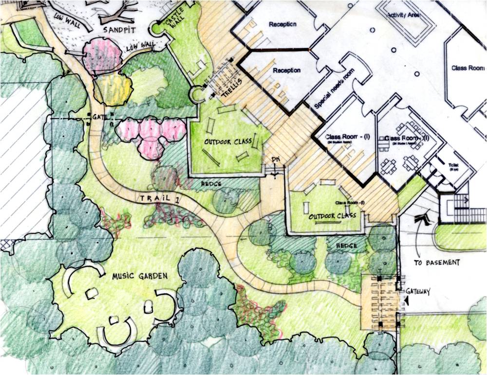 Inside outside connections to every space were emphasized. A experientially varied play yard was designed for the preschool.